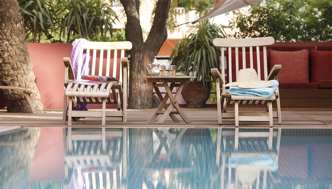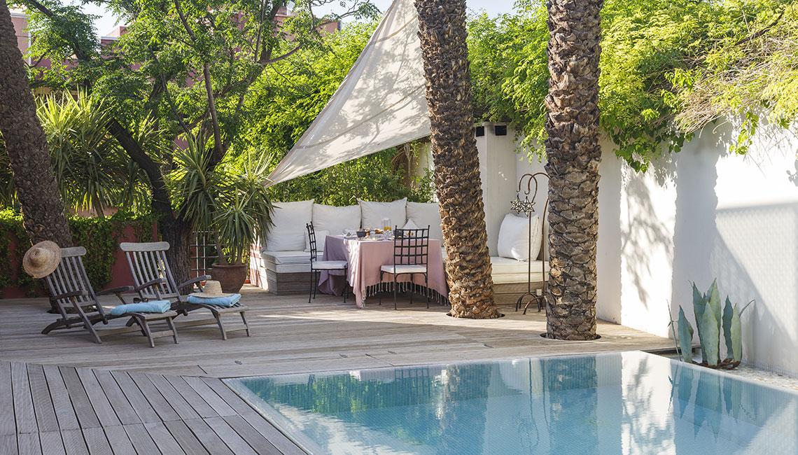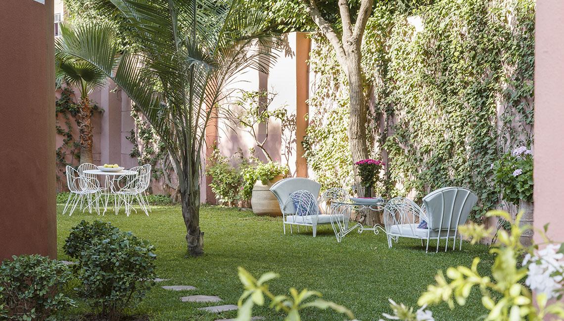 Terrasse panoramique avec vue sur la végétation luxuriante du quartier Majorelle