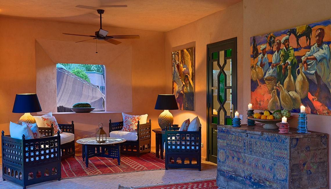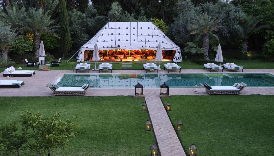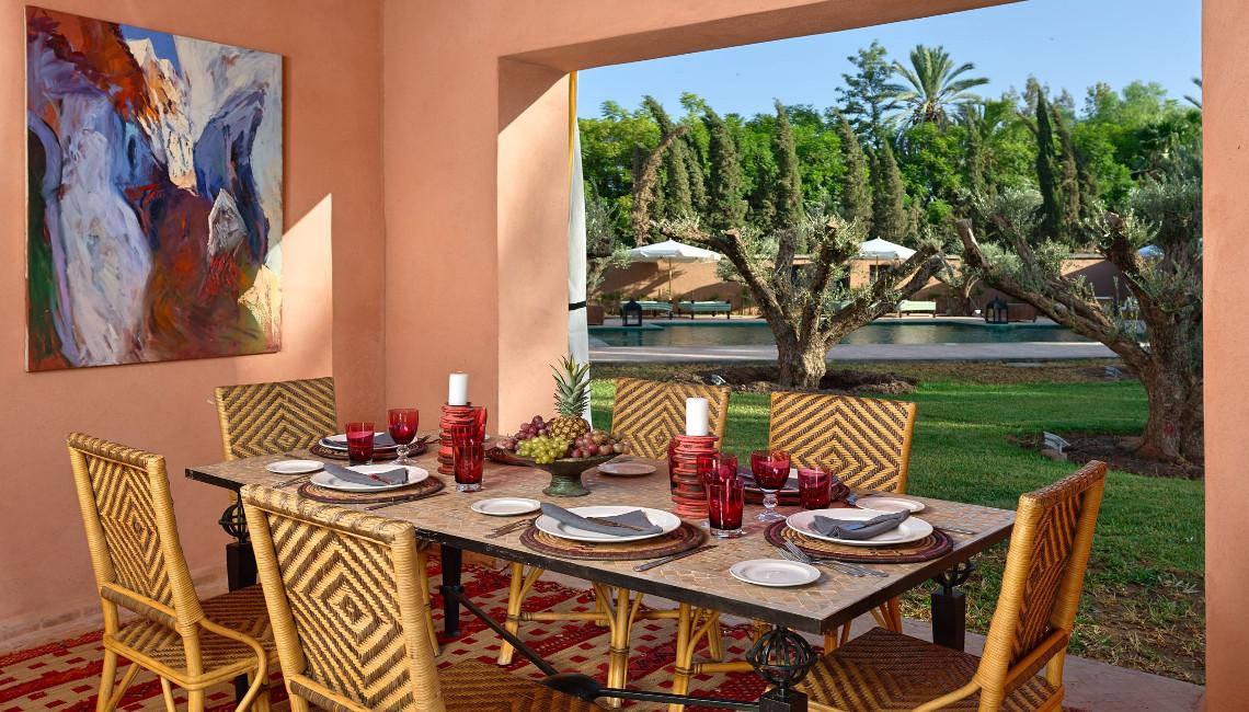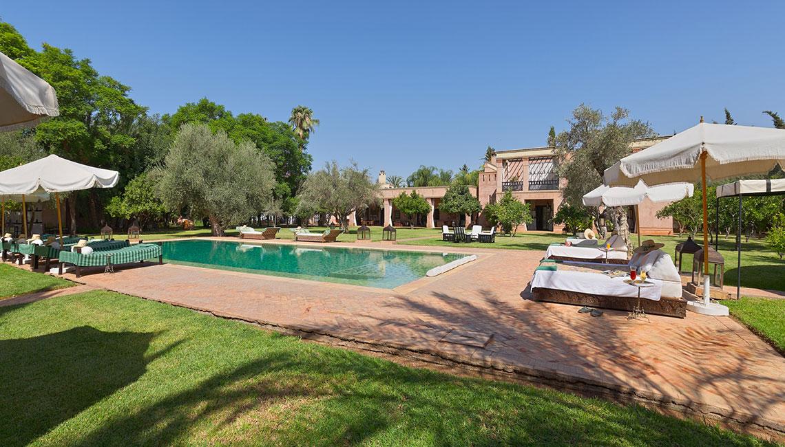 Cette villa unique All inclusive dispose de 3 villas à l’intérieur d’une propriété privée et sécurisée, 1 avec deux lits, 2 avec trois lits, 3 avec huit lits. Situé dans la meilleure zone de la palmeraie, la villa ne peut être louée qu’en exclusivité. Les différentes prestations comprennent une grande piscine, chauffée si besoin, un spa, une table de Ping pong, gymnase, salle de billard et deux salles de télévision. Le prix inclus tous les plats choisis à la carte, toutes les boissons sans alcool, massages et des soins de beauté. Combinant les 3 villas du domaine elle accueillir jusqu’à 26 personnes avec un service VIP servi par une équipe de 17 personnes.