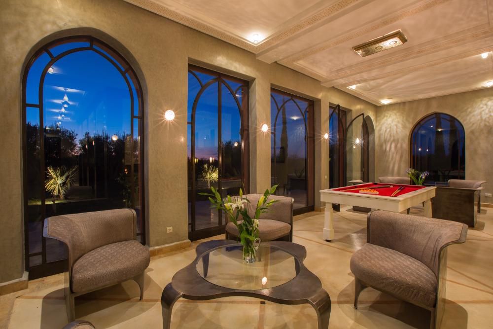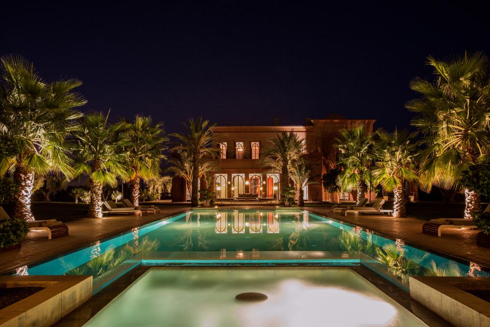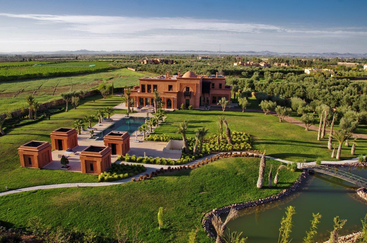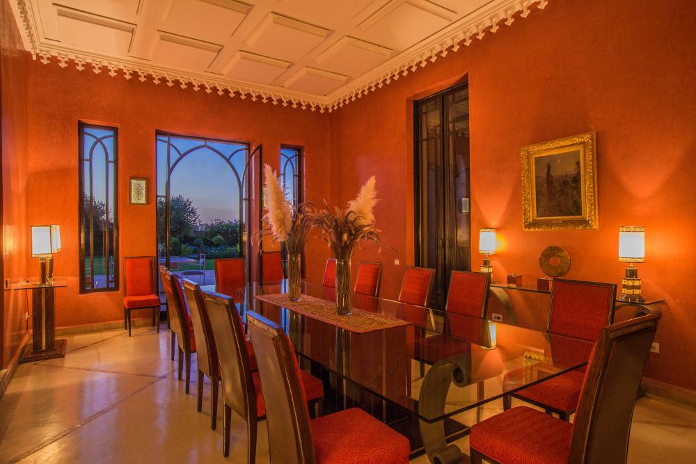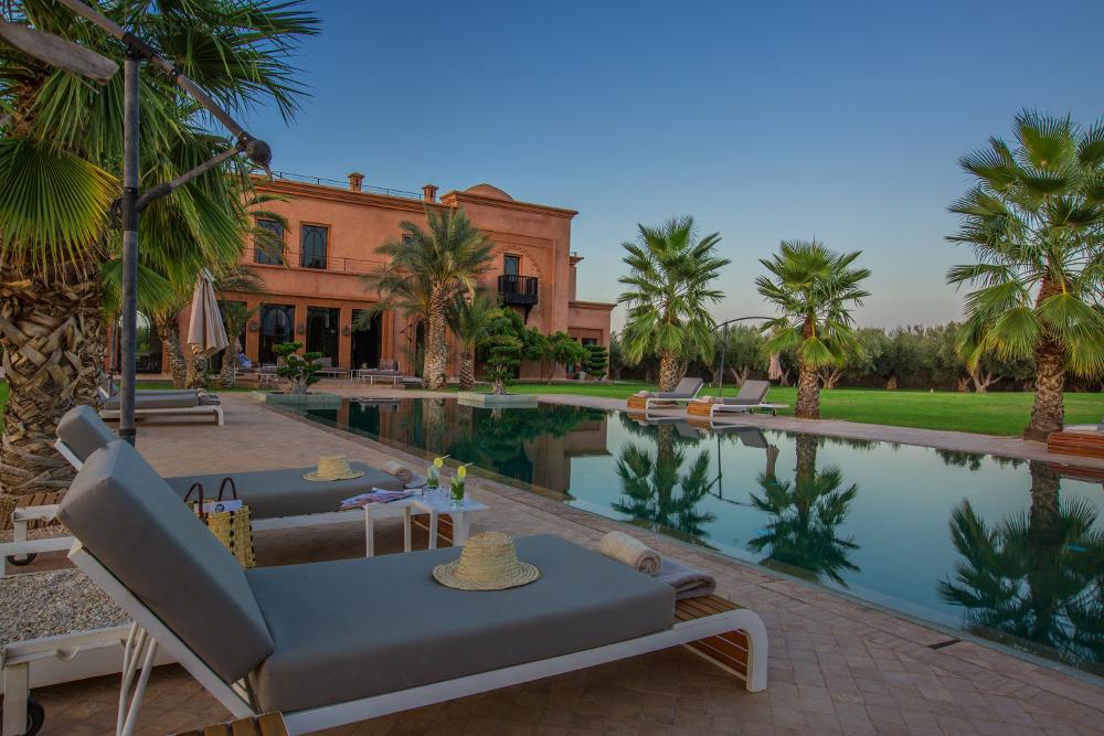 Construit sur un terrain de 12000 m² avec une surface habitable de 1000 m² le Palais est un véritable joyau architectural, s’érigeant face à l’atlas au cœur d’un parc paysager aux milles senteurs non loin de la trépidante Marrakech, sur la route de la vallée de l’ourika. Avec ses 5 suites magnifiquement décoré et son entrée majestueuse couronnée d’une coupole finement sculptée, une fois à l’intérieur nous croyons vivre un rêve.