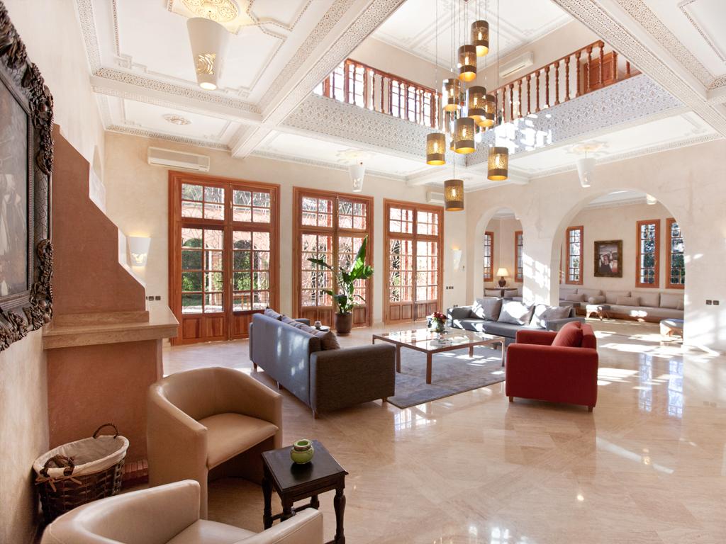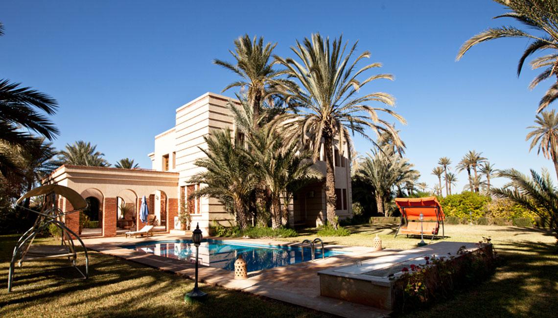 La villa se situe dans domaine privé composé de plusieurs villas avec piscine privée pouvant accueillir jusqu’à 10 personnes . Situé dans la Palmeraie de Marrakech, le site bénéficie d’un SPA ainsi que d’un espace de réception de plus de 2 000 m² répartis sur plusieurs niveaux avec un bar lounge panoramique offrant une vue exclusive sur les montagnes de l’Atlas.