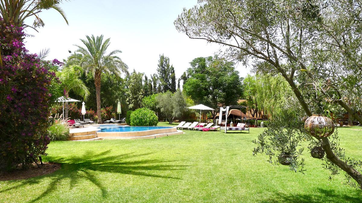 La villa se trouve sur la route vers Ouarzazate dans un terrain de 2 hectares de jardins paysagers de calme et de tranquillité.